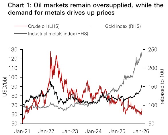 • Geopolitical tensions have increased market volatility, with recent developments around Greenland and Iran adding to the complexity. However, we anticipate that any sell-off will be less severe than that of last April. Our investment strategy aims to capture the broadening opportunities driven by AI-led innovation while navigating geopolitical uncertainties through multi-asset diversification, including increased exposure to alternatives and gold.
