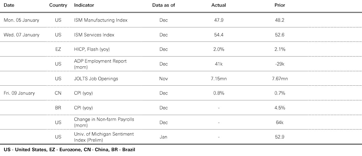 Past performance does not predict future returns. The level of yield is not guaranteed and may rise or fall in the future. For informational purposes only and should not be construed as a recommendation to invest in the specific country, product, strategy, sector, or security. Diversification does not ensure a profit or protect against loss. Any views expressed were held at the time of preparation and are subject to change without notice. Index returns assume reinvestment of all distributions and do not reflect fees or expenses. You cannot invest directly in an index. Any forecast, projection or target where provided is indicative only and is not guaranteed in any way. Costs may vary with fluctuations in the exchange rate. Source: HSBC Asset Management. Macrobond, Bloomberg. Data as at 7.30am UK time 09 January 2026.