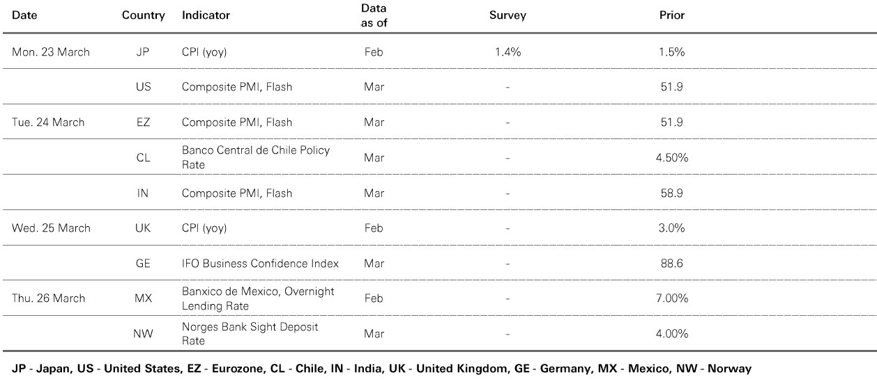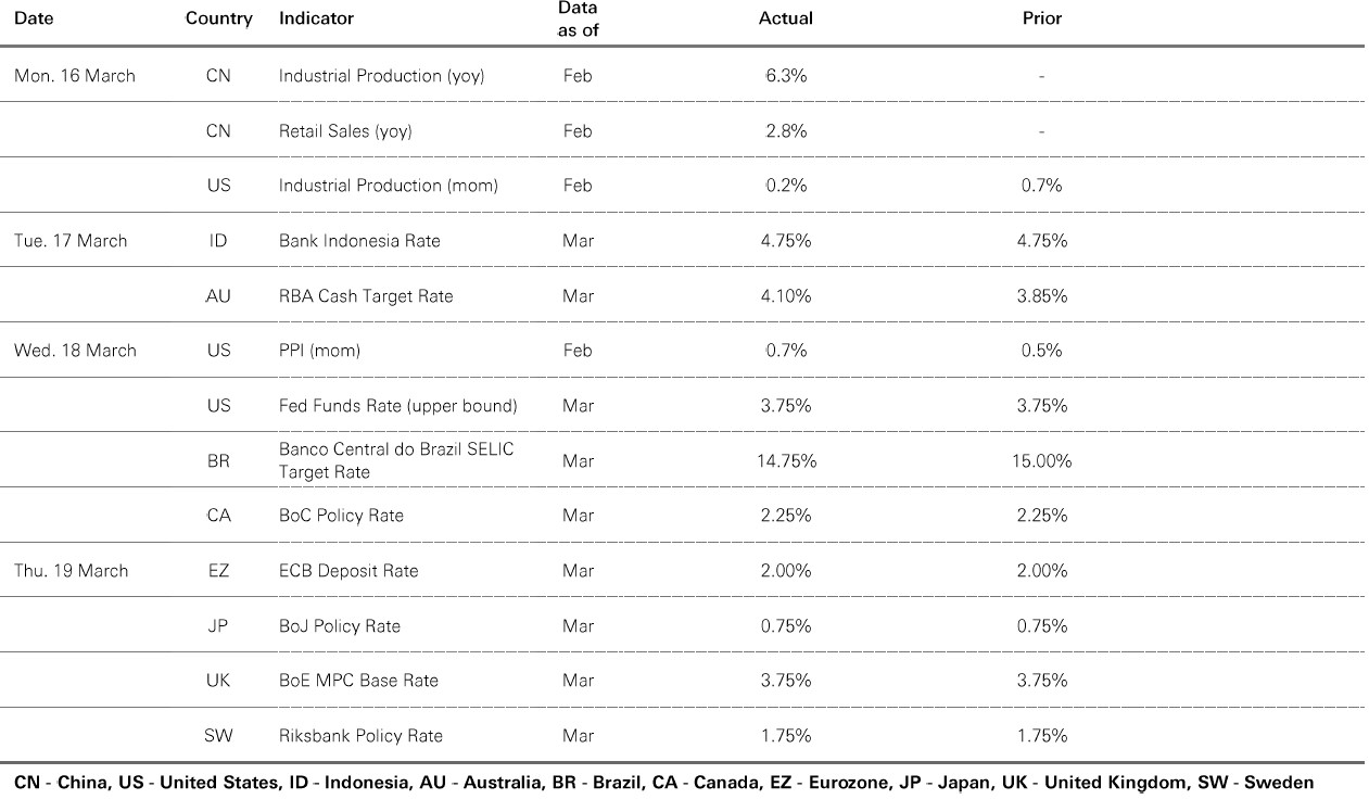 The value of investments and any income from them can go down as well as up and investors may not get back the amount originally invested. Past performance does not predict future returns. The level of yield is not guaranteed and may rise or fall in the future. Past performance does not predict future returns. For informational purposes only and should not be construed as a recommendation to invest in the specific country, product, strategy, sector, or security. Diversification does not ensure a profit or protect against loss. Any views expressed were held at the time of preparation and are subject to change without notice. Any forecast, projection or target where provided is indicative only and is not guaranteed in any way. Source: HSBC Asset Management, Bloomberg, Macrobond. Data as at 7.30am UK time 20 March 2026.